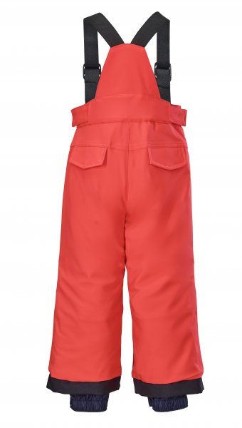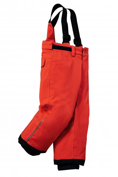 Stahování v pase na suchý zip, nastavitelné a odepínatelné šle, protisněhový pás v dolní části nohavic, anatomicky tvarovaná kolena, vyztužená kolena a zadek, reflexní prvky pro větší bezpečí.